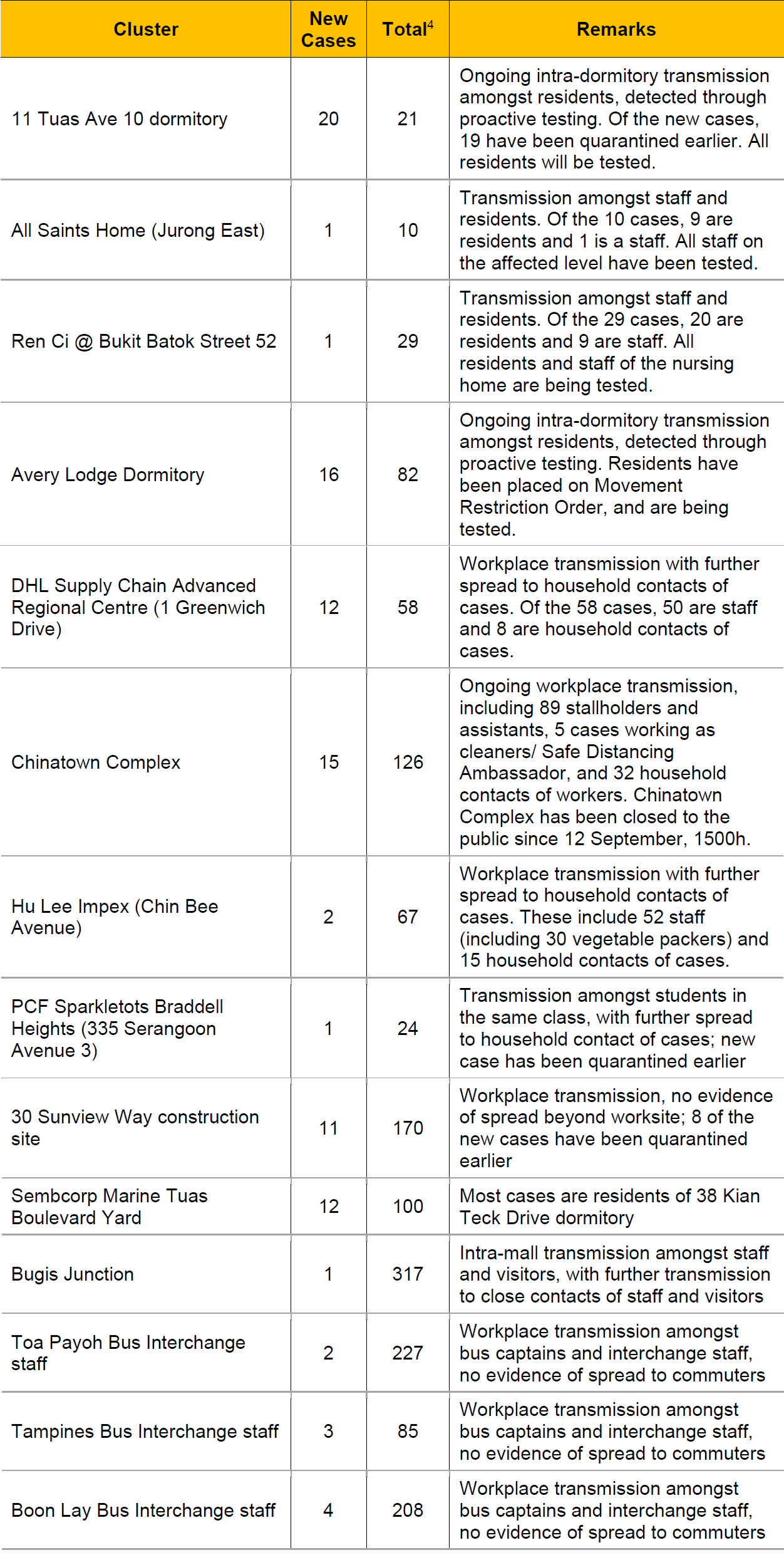 Two new large clusters at an All Saints Home in Jurong East and a dormitory in Tuas have also been detected.