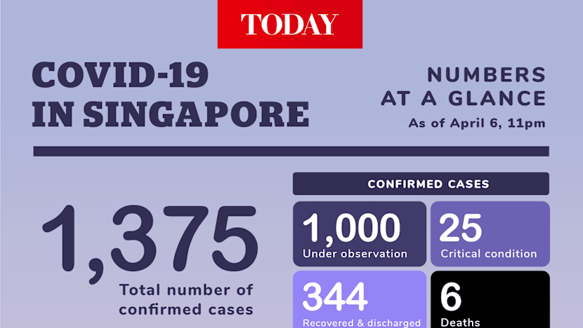 As of 11pm on Monday (April 6), there are 1,375 confirmed cases of Covid-19 in Singapore, with 30 clusters of infection identified. Six people have died.