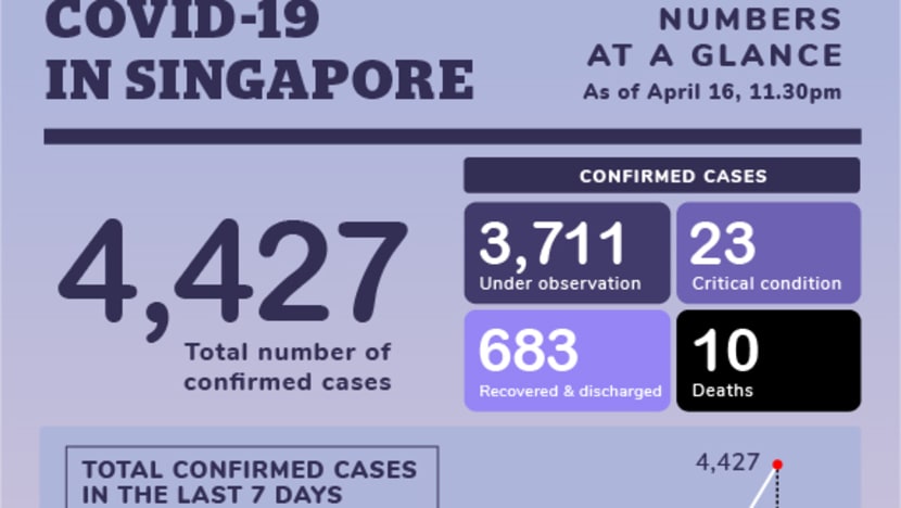 SINGAPORE — The Ministry of Health (MOH) on Thursday (April 16) announced 728 more cases of Covid-19, bringing the total number of infections here to 4,427.