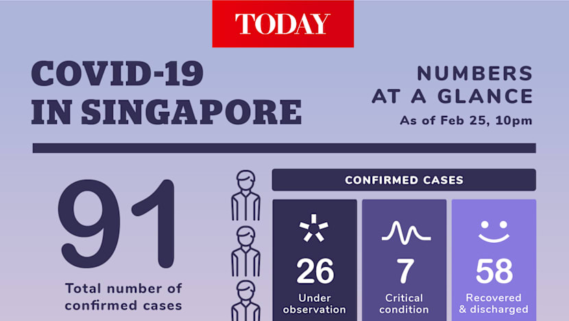 So far, there have been 91 reported cases of infected patients in Singapore and the latest one was confirmed to have the virus on Feb 22 but was announced by MOH on Tuesday.