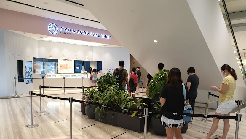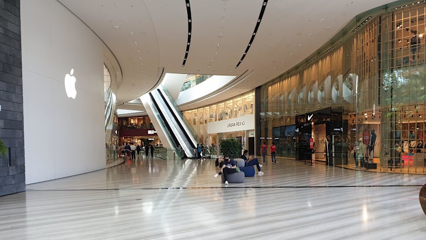 More people seemed to be congregating around the first and basement level one floors, with a short queue of about eight people outside Rich & Good Cake Shop at about 12.30pm. There was also a crowd of about 30 inside the two-storey Apple store.
