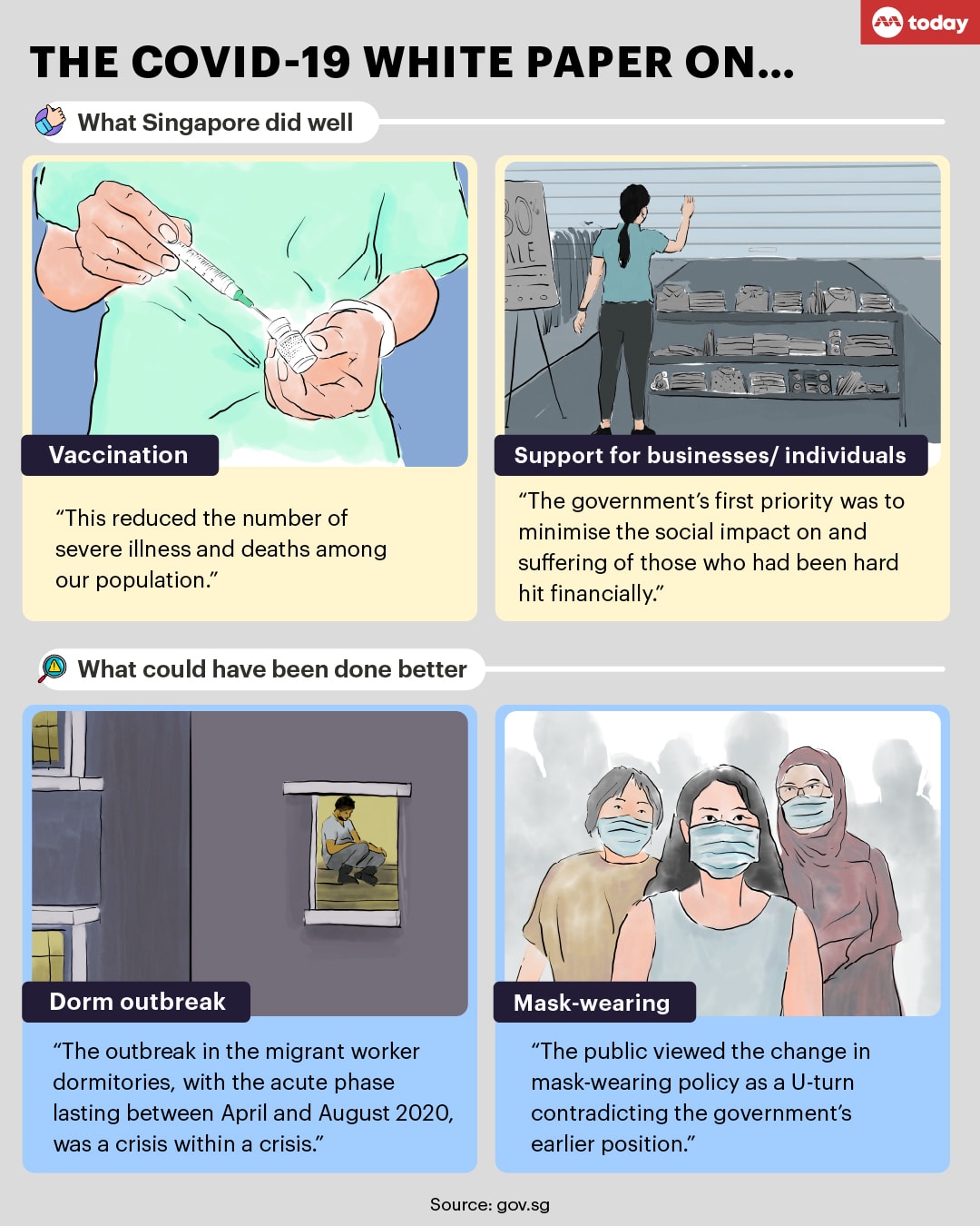 Drawing findings from an internal review by former head of civil service Peter Ho and after-action reviews done by various government agencies, the paper also identified key areas in the pandemic response where the Government did well.