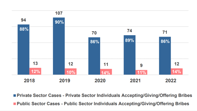 CPIB said in its annual statistics release that most cases in 2022 originated in the private sector instead, at 86 per cent.