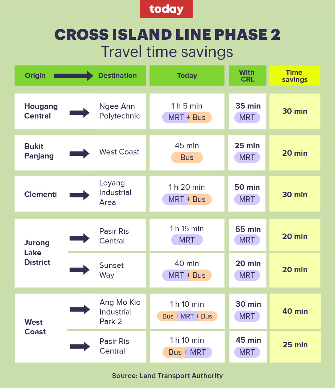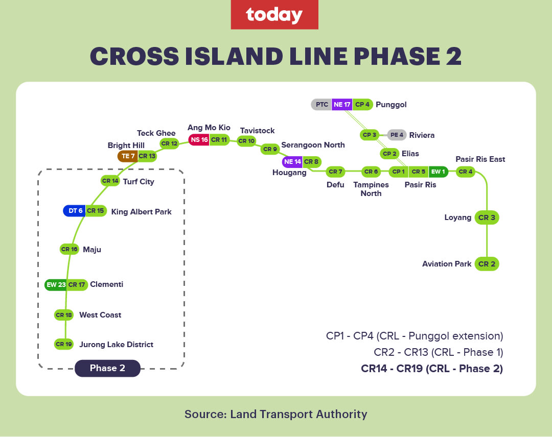 The six stations will be an addition to the 12 stations of the Cross Island Line's first construction phase to be completed by 2030, as well as the four stations on the Cross Island Line-Punggol extension to be completed by 2032.