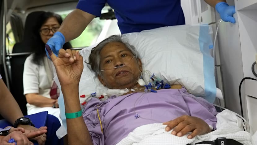 Mr Bigman Sirait, 58, underwent surgery in Singapore to replace a heart pump last month and had to vote in an ambulance with a doctor by his side.