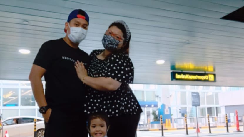 Ms Safawati Latif, her husband Muhammad Fadinoh Ismail and their daughter as they prepared to leave on the cruise. Photo: Safawati Latif