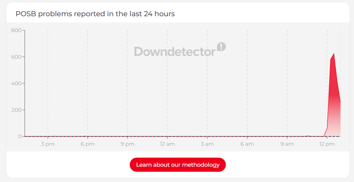 The number of reports on downdetector for POSB spiked to 625 at 12.30pm.