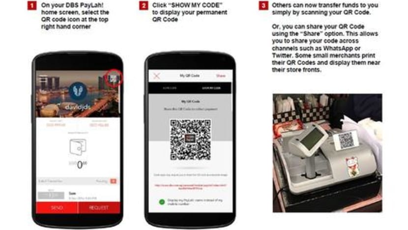 QR code payments through DBS's PayLah! app will also be made available on NETS terminals at over 2,000 merchants within the next two months, and the bank plans to increase the number of merchants to 10,000 by the end of the year.