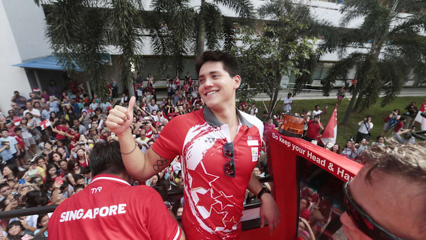 Mr Schooling, then 21, won the gold medal in the men’s 100m butterfly final after clocking an Olympic record of 50.39sec at the Rio de Janeiro Games, beating American great Michael Phelps, South Africa's Chad le Clos and Hungary's Laszlo Cseh who all finished in joint second at 51.14sec.