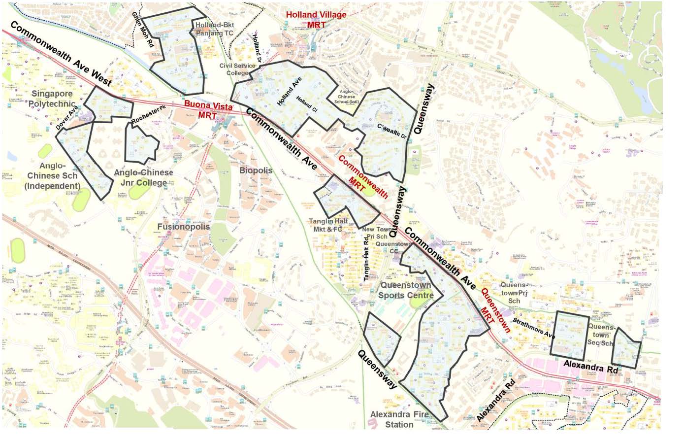 The five locations are Bukit Merah – Telok Blangah, Clementi – West Coast, Commonwealth, Holland, and Marine Parade – Mountbatten, and will comprise both Housing Board (HDB) and landed estates.