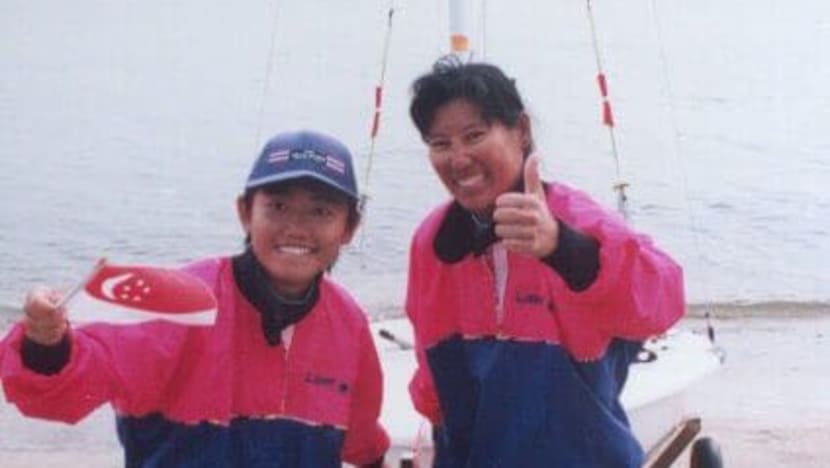 Ms Joan Huang (left) and sailing mate Naomi Tan in Bangkok for the Asian Games in 1998, where they became the first female sailors to win gold for Singapore. Photo: Joan Huang