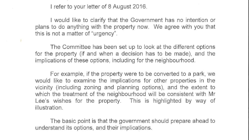 “He wanted the committee to focus on ... the clause relating to Mr Lee’s wishes on the House, and not its other part,” she said.