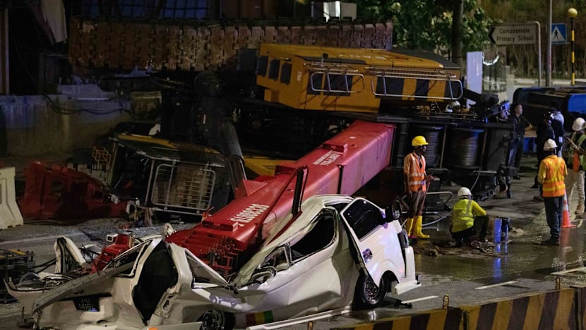 Driver, 28, injured after falling construction crane crushes van in accident at Punggol Road; crane operator arrested