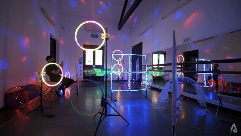 Located at Midview City in Sin Ming, Whoop Arena allowed visitors to fly “tiny whoops” – drones weighing less than 250g, which fit in the palm of your hand – around a darkened room measuring about 750 sq ft, or slightly larger than a three-room Housing Board flat, weaving through an obstacle course lit up by LED lights.