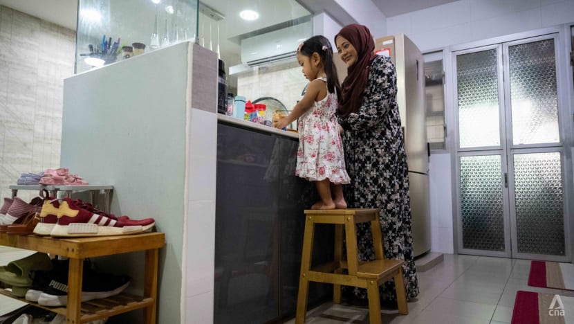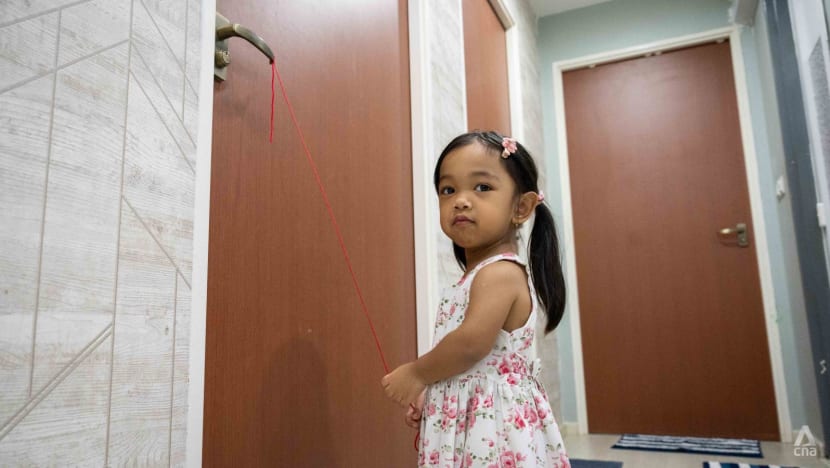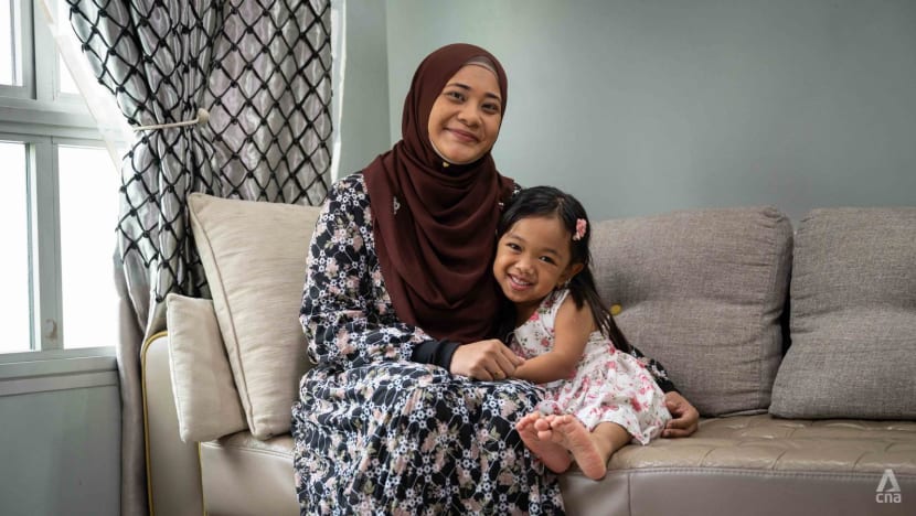 Five-year-old Nuha Eliya, who is 89cm tall, was playing a dance game on her Nintendo Switch and strutting about doing her favourite dance moves when CNA visited her family’s home in Yishun.