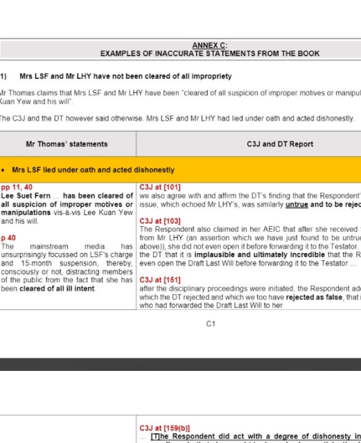 “I urge readers to go to pages 28 and 29 of my book, where I lay out clearly the Court of Three Judges' findings, including the alleged inaccuracies offered by Lee Hsien Yang and Lee Suet Fern,” he said.