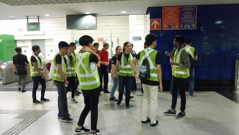 Crowd marshals comprising mostly teenagers – one of whom told TODAY he was paid S$8.50 per hour – were seen stationing themselves at various exit points of Outram Park station at about 10.30pm.