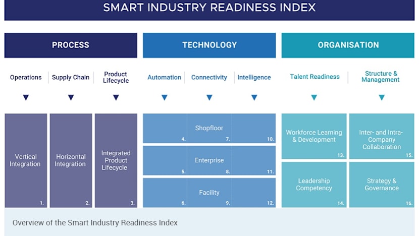 Siri essentially identifies three fundamental building blocks of Industry 4.0: Technology, process and organisation. Underpinning these are eight pillars that companies must focus on to become future-ready organisations.