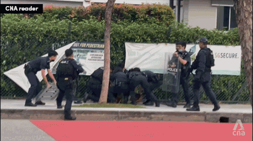 One person, who did not want to be named, told CNA that he saw a woman holding a knife and pointing towards the officers. He said he heard officers telling the woman to put the knife down.