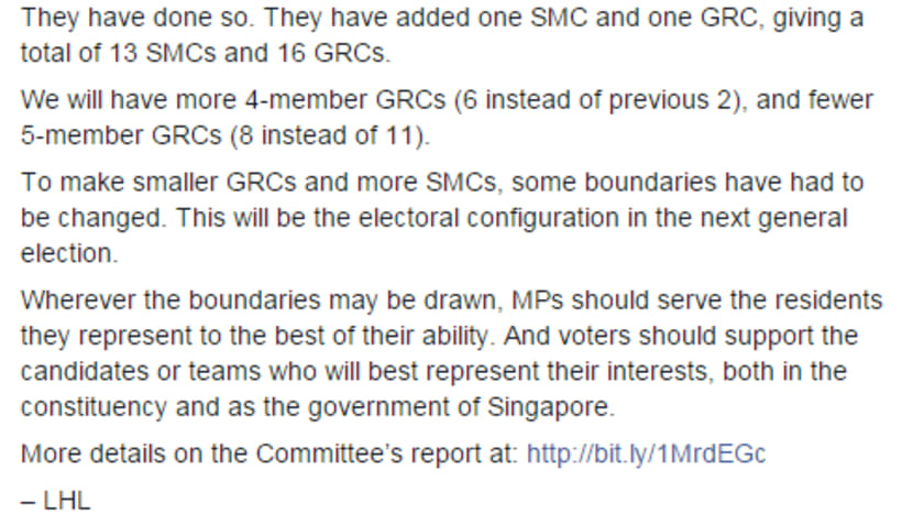 Electoral boundaries report: 13 SMCs, 16 GRCs for next GE