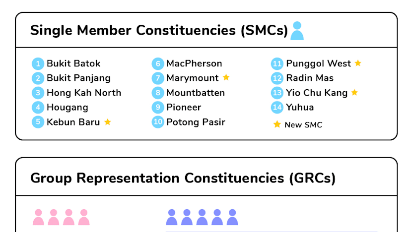Apart from the creation of a new Sengkang GRC, which will have four MPs, several existing GRCs will see changes in the number of MPs representing the voting district:.