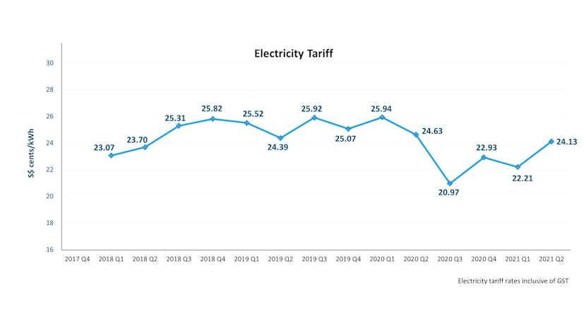 In the first quarter of 2020, the tariff, inclusive of GST, was 25.94 cents per kWH while in the second quarter of last year, it was 24.63 cents per kWH.