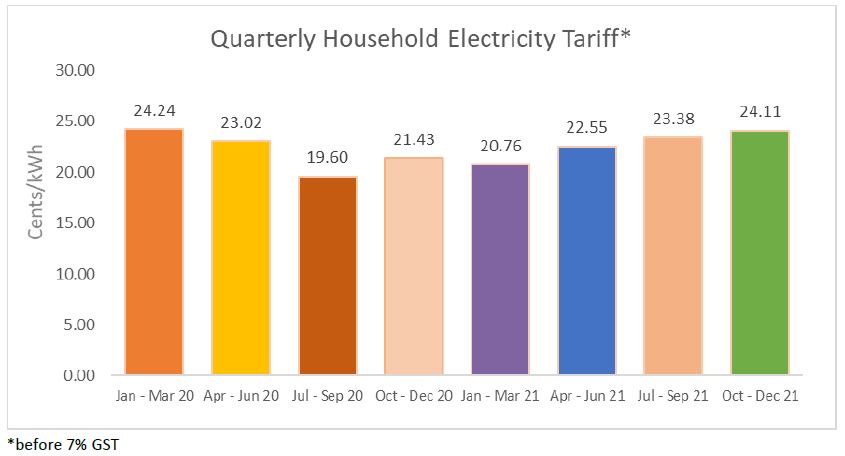 SP Group reviews the electricity tariffs every quarter based on guidelines set by the Energy Market Authority (EMA).