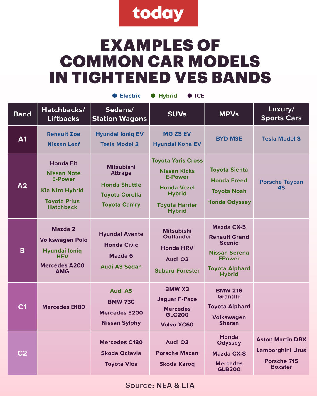 In a joint press release on Thursday (June 30), the National Environment Agency (NEA) and the Land Transport Authority (LTA) announced that "only cars with zero tailpipe emissions" such as EVs will qualify for the revised A1 band.