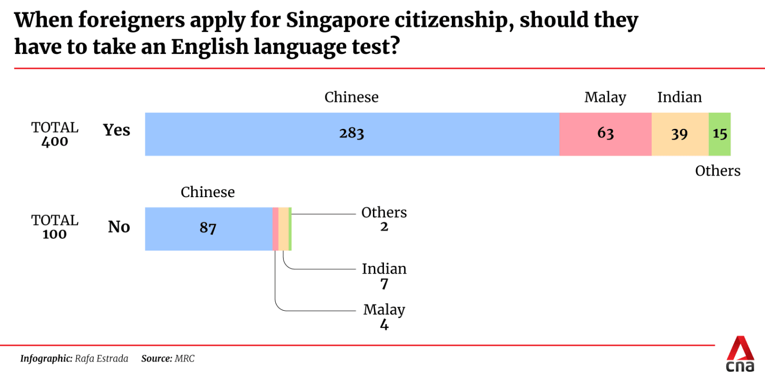 - 80 per cent of 500 Singapore-born citizens polled were in favour of an English test being part of the country's citizenship application process