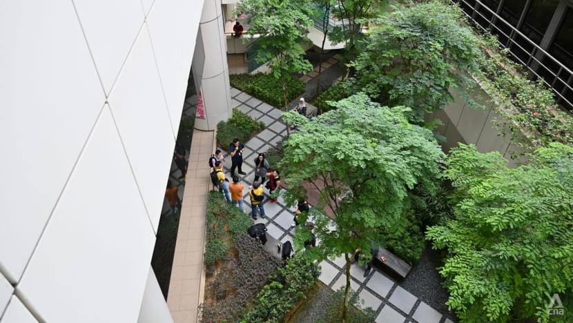 The first signs of a security situation at the Environment Building at 40 Scotts Road came at around 9am when multiple sources told CNA that people were allowed to leave but not enter.
