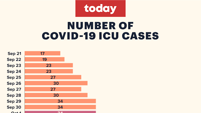 The total number of cases warded in ICU has steadily increased from 17 cases on Sept 21, to 27 cases on Sept 27 when the stabilisation measures were implemented, to 67 cases on Monday. This went up to 71 on Tuesday, as Singapore logged a record 3,994 new Covid-19 infections.