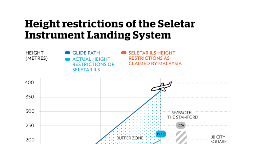 What the video says: Previously, Seletar Airport did not use ILS. Pilots can manoeuvre around obstacles and no height regulation is required around flight path area. With ILS, it will be compulsory to impose height restrictions.
