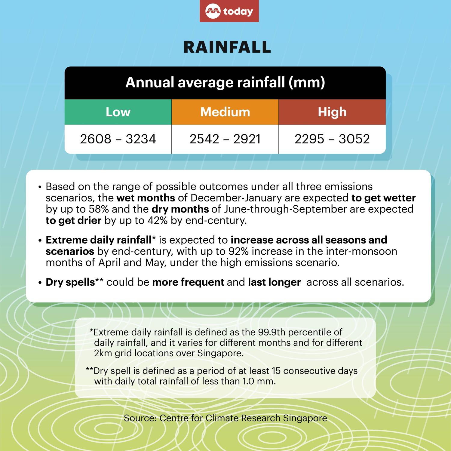 Singapore will see much more rainfall during rainy monsoon seasons.