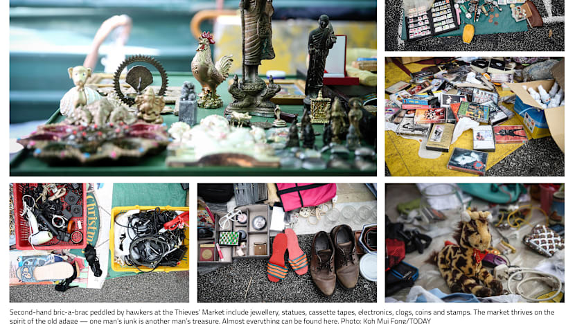 As each hawker is allotted a 1m-by-1m space, some of them end up hidden behind the heaps of old clothing that they are selling. Others showcase their prized possessions in display cases, including jewellery that has been slightly tarnished, vintage watches and old coins.