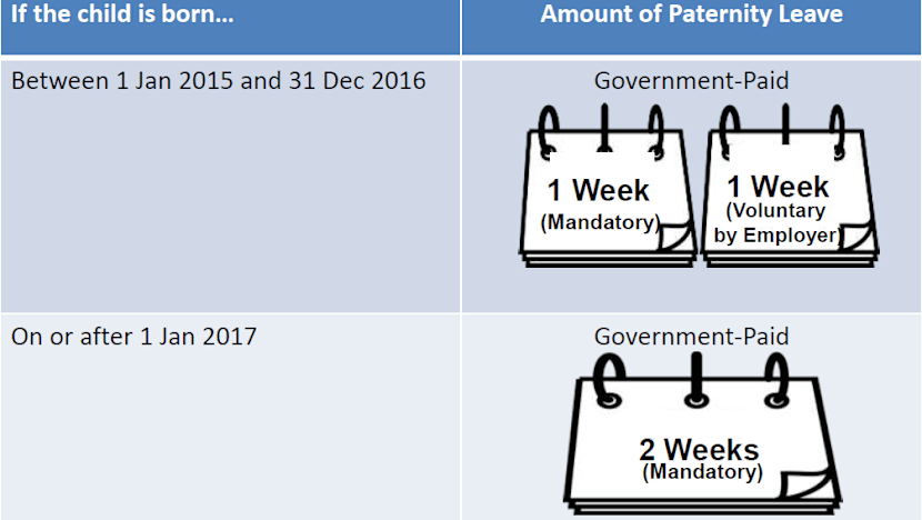 Fathers will get that extra second week of government-paid paternity leave if their child is a citizen born from Jan 1, 2017, if they are lawfully married to the child’s mother and if they have served their employer continuously for at least three calendar months preceding the child’s birth.