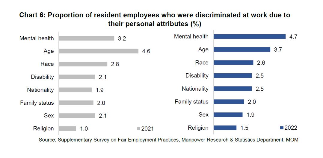 More job seekers and employees did, however, experience discrimination based on mental health, according to MOM's Fair Employment Practices Report for 2022.