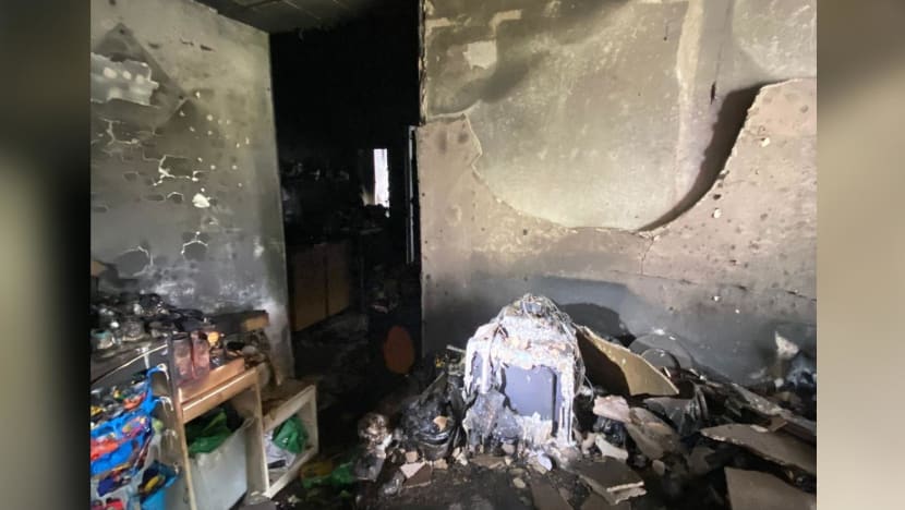 "The fire, which involved contents of the living room and a part of the kitchen, was extinguished by SCDF using a water jet."