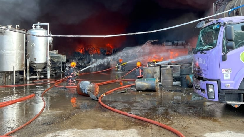Fire breaks out at waste oil processing plant at Benoi Lane in Tuas