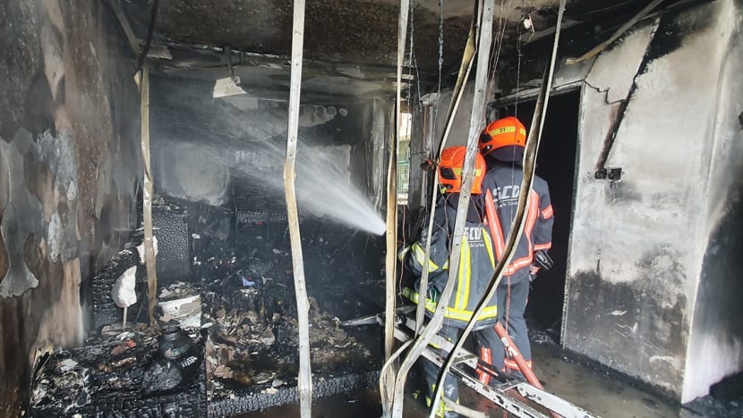 SCDF said the blaze had caused the bedroom's windowpanes to shatter and fall to the ground.