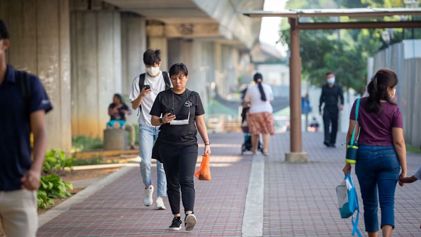 Pedestrians seen in Tampines on March 29, 2022, the first day when people are allowed to choose not to wear masks when outdoors.