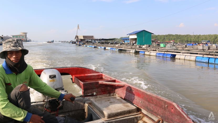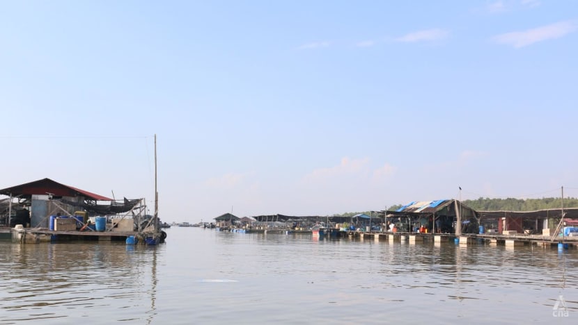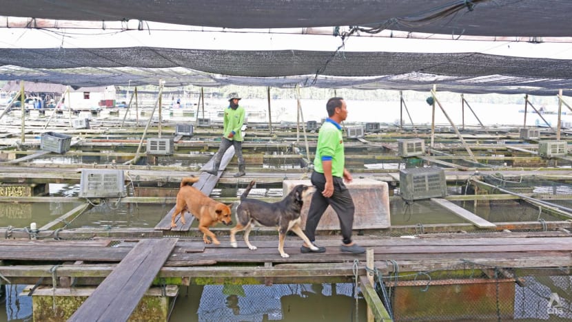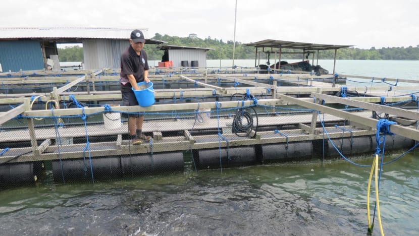 CNA took a 10-minute boat ride from the jetty to visit Mr Ee's 2,000 sq m farm, where he raises sea bass and other types of fish.