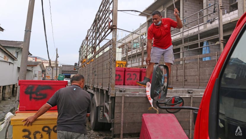 Fish merchants and wet market vendors at Jurong Fishery Port on Jun 9, 2022. (Photo: CNA/Aqil Haziq Mahmud)