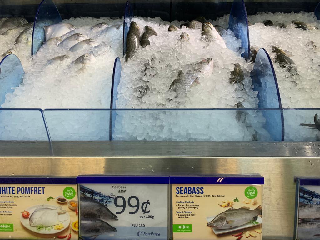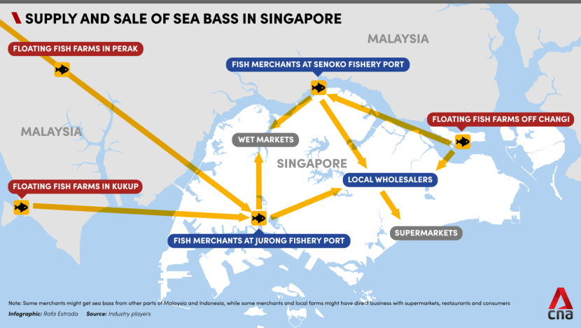 FairPrice supermarket, which sources its sea bass from farms both in Singapore and Malaysia, said it gets imported seafood through wholesalers "to offer an extensive range of harvested fishes that meet our product specifications".