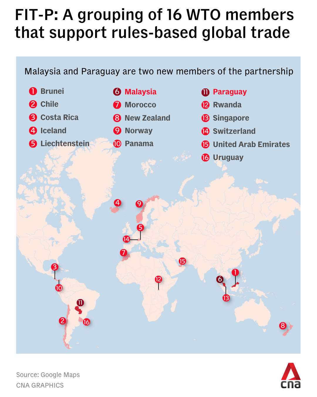 Singapore is one of the original members of the FIT Partnership, which was first launched on Sep 16 to champion a forward-looking trade agenda at a time when the global rules-based multilateral trading system is under strain.