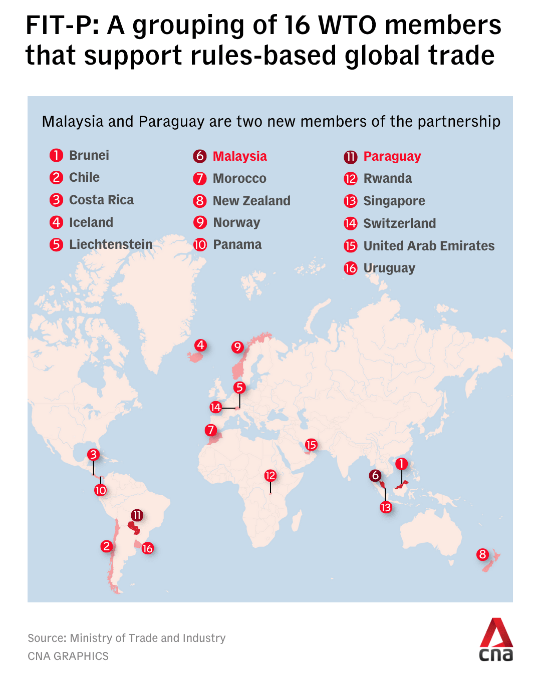 Singapore is one of the original members of the FIT Partnership, which was first launched on Sep 16 to champion a forward-looking trade agenda at a time when the global rules-based multilateral trading system is under strain.