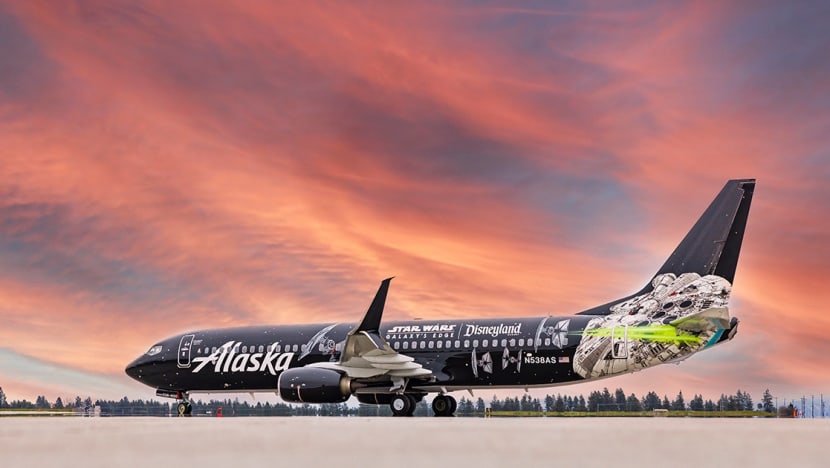 The Boeing 737-890 promotes the Star Wars: Galaxy’s Edge themed areas at Disney’s parks in California and Florida, and is operating across Alaska's network.