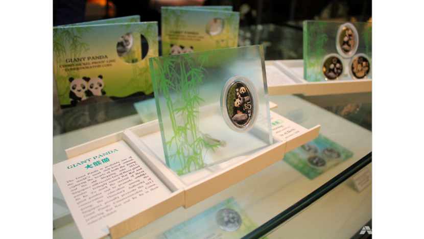 Panda-themed coins, which were produced to commemorate Jia Jia and Kai Kai's arrival in Singapore in 2012. (Photo: Hester Tan)