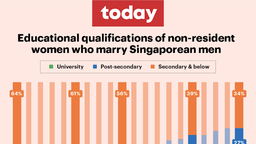 SINGAPORE — Foreign brides who marry Singaporean men are becoming older and better educated than in the past, based on data released on Thursday (April 22) by the Ministry of Social and Family Development (MSF).