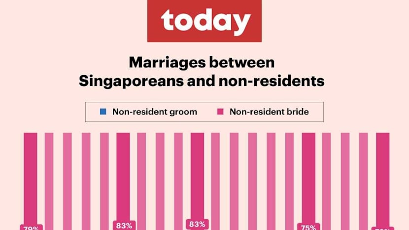 The number of Singaporean women who took non-resident grooms in the last two decades had jumped by 75 per cent, from 989 in 2000 to 1,727 in 2019, government data showed.
