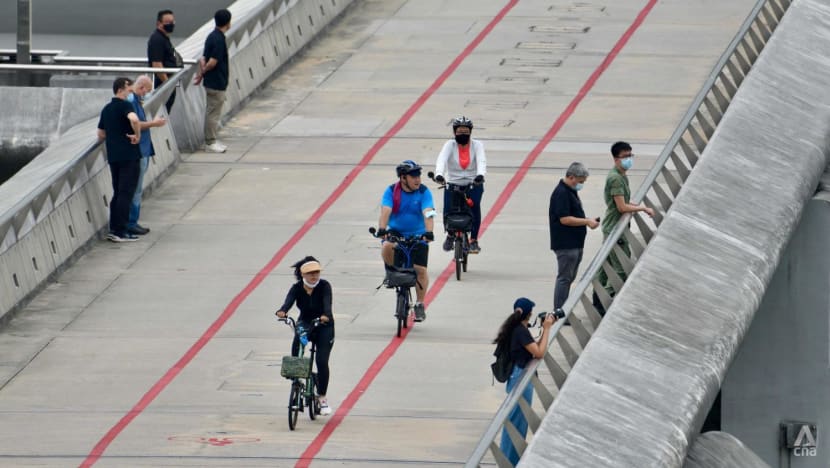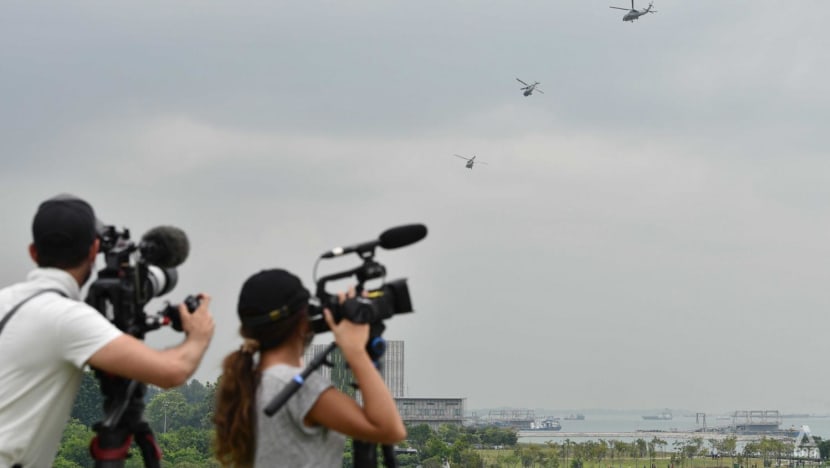 Nearby at Marina East Park, a crowd had gathered by the breakwater to catch a glimpse of the multi-nation military display, which was also livestreamed on the Ministry of Defence’s (MINDEF) social media platforms.